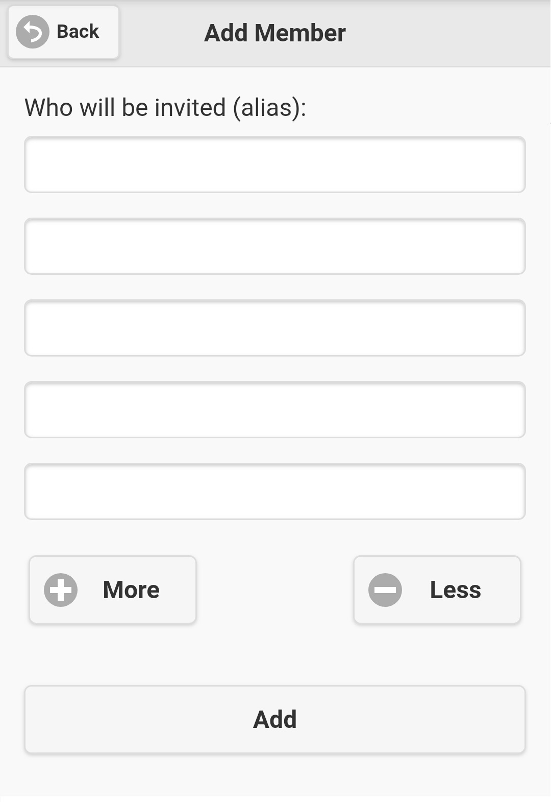 figure 3.3.1), screen like figure 3.6.1 will be displayed. Initially, there are 5 input fields for you to invite new group member(s), if you need more