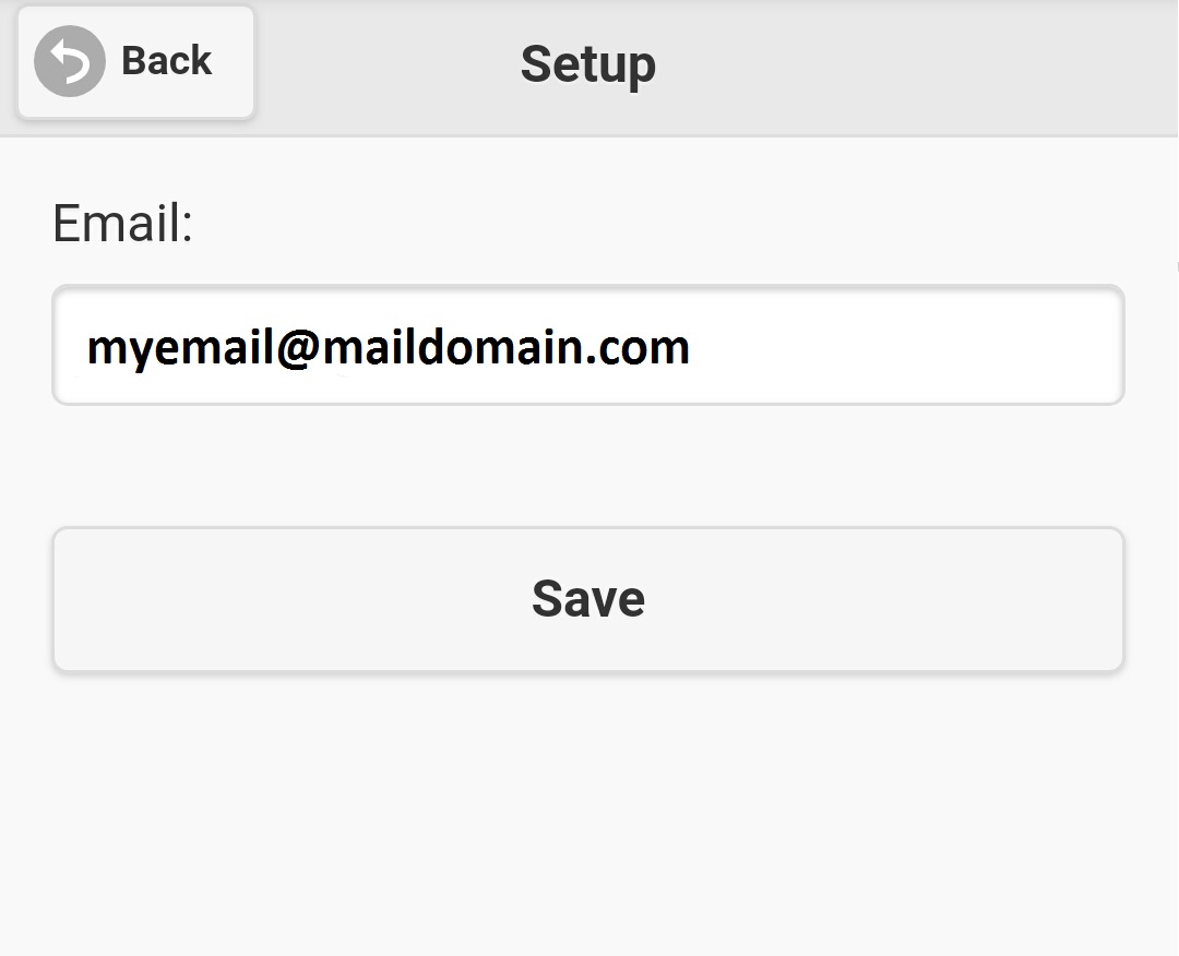 To input or change your email address, click on 'Email' on main menu, screen like figure 2.3.1 will be displayed, put your email address on the