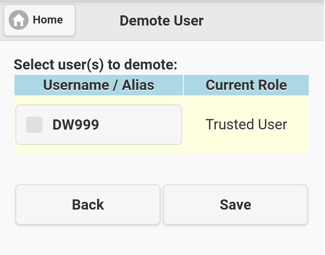 front of desired user's alias, and then click 'Save' button to demote selected user(s).