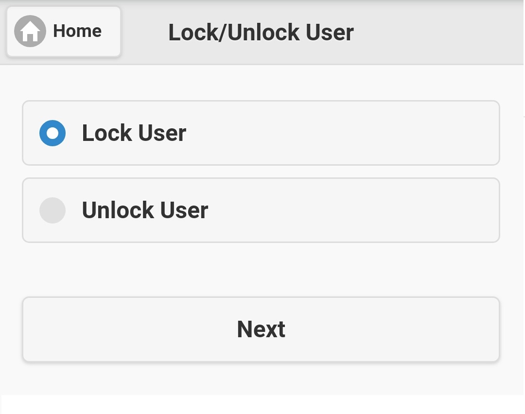 Similarly, if you want to unlock a locked user, select 'Unlock User' radio button on figure 4.4.1, and select desired locked user(s) on figure 4.4.2,